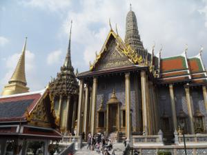 The next day went pretty smoothly, a lot of walking and sweating in the tropical heat since we (mostly just me) weren't used to the humidity yet. It started with a great complimentary breakfast and some walking around the local area. We had to check out at noon, but were able to leave our backpacks at the hotel. In the afternoon we went to the Grand Palace and the Temple of the Emerald Buddha (Wat Phra Kaew). I was picturing a palace and a temple, but the ground are much bigger than that and there is a lot to see. Most of it probably went over my head, but I really enjoyed seeing all the buildings, the statues, and the amazing architecture and detail and attention that went into building everything. The intricacy on some of the temples was amazing, 50 and 100 foot tall buildings covered with stones and gems smaller than a fingernail. I was also shocked to learn that the Emerald Buddha was so small, maybe only a foot or two tall. Though the temple that it is housed in and the setting that it's up on is very big. It was interesting to learn that there are also 3 outfits that it has, one each for the hot season, cool season, and rainy season. Also of note is that to gain entrance to the Wat you must have long pants and covered shoulders, however they are nice enough to loan appropriate clothes to anyone in need -- for free! (You just pay a deposit and get it back when you leave.)